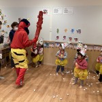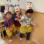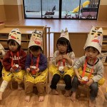今年も節分の日にお山から赤鬼さんがやってきました!! 子どもたちは鬼のズボンを履いて鬼のお面をかぶり、豆まきの練習をしていたら、突然赤鬼さんが登場‼😲 子どもたちはびっくりして泣きながらも、一生懸命豆をまいて鬼退治をがんばりました。 小さな可愛い勇士を見てあげて下さい。 最後は赤鬼さんも心を入れ替え優しい鬼さんになって、子どもたちからヨシヨシ😊 撫でてもらい仲良しになりました💓