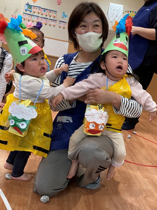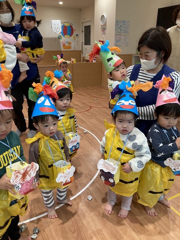 大泣きする子に泣かずに頑張って豆を投げる子・・・いろんな姿が見られましたよ みんな勇気を出してよく頑張りました☺