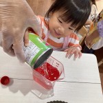 まずは手をきれいに石鹸で洗い…みかんを型に並べる係、ゼリー液を作る係、混ぜ混ぜ係、味見係!!