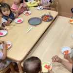 縦割り保育の中でそれぞれが、自分にできるお手伝いでクッキングに挑戦しました。