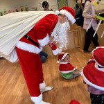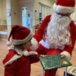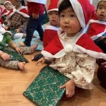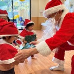大きな袋にプレゼントをいっぱい詰めた院長サンタが、今年も保育園にやってきました。子どもたちは歓声をあげて大喜び!保育園が笑顔で包まれました。(0歳児クラスには、初めて見るサンタさんに泣き出してしまうお友達もいましたが…)