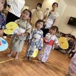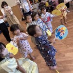 今年はパパやママたちと一緒にうちわ制作も行い、出来上がったうちわを持って盆踊りも楽しみました。皆様のご協力ありがとうございました。
