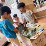 初回の今月、段ボール2個にいっぱいのお野菜がぎっしり!! 可愛い折り紙できれいにデコレーションされてあり、子どもたちは大喜びでした😄 「サニーレタス」「フリルレタス」「わさび菜」「バジル」「大葉」・・・いろんなお野菜がたくさん!!