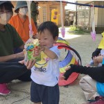 障害物競走では吊り下げられたお菓子をゲットすべく、トンネルをくぐりダッシュで走ってお目当てのお菓子を手にしていた子どもたちです(笑)